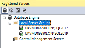 Copy the query into this query window. It’ll have a pink status bar down the bottom to indicate it’ll be running for multiple instances. When I execute the query, I get two rows in the results, one per server. Registered Servers adds in a Server Name column for me, hence the extra column on the left. I wouldn’t need my SQLServerName column if using this method to execute: