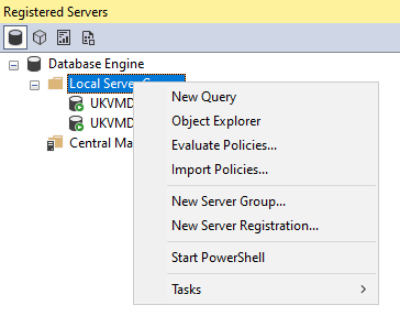 So now, you can run this query against multiple instances. There are many ways to do this, but the easiest way to do it is to use the Registered Servers in SSMS. Here, I have all my servers listed and I can right click the folder they are in and select New Query.