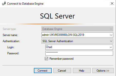 You can connect to the DAC both using SSMS and sqlcmd.exe. To connect using SSMS, you must open a new query window, then change the connection of that query window. When specifying the Server name, enter “admin:” and then the instance name you want to connect to. e.g. admin:myinstance.